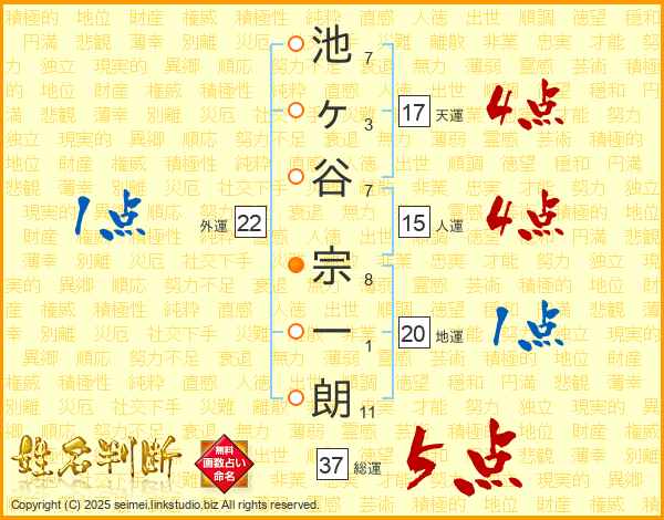 池ヶ谷宗一朗さんの総運は37画の5点!