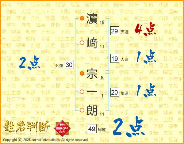 濵﨑宗一朗さんの天運は29画の4点!