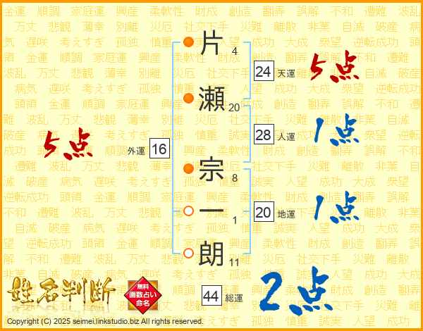 片瀬宗一朗さんの総運は44画の2点!