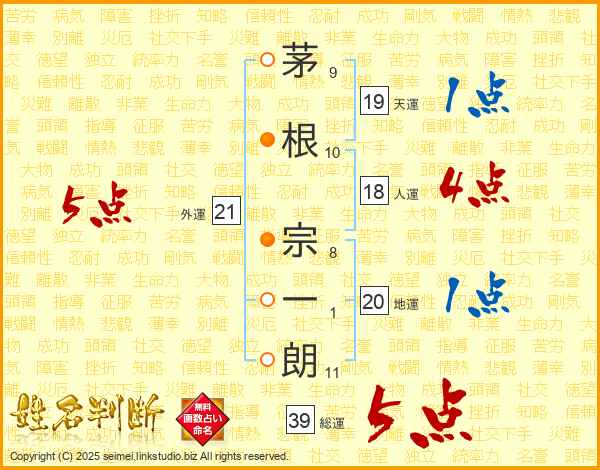 茅根宗一朗さんの総運は39画の5点!