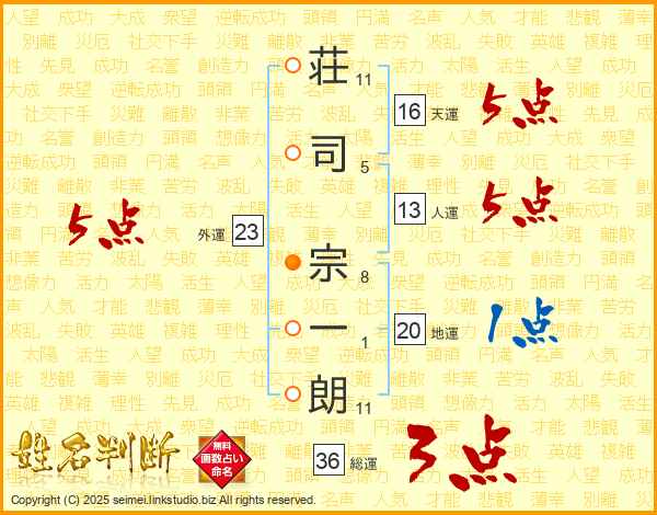 荘司宗一朗さんの外運は23画の5点!