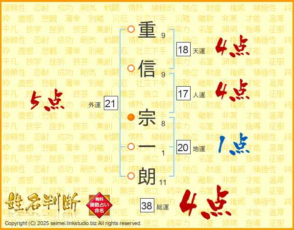 重信宗一朗さんの総運は38画の4点!
