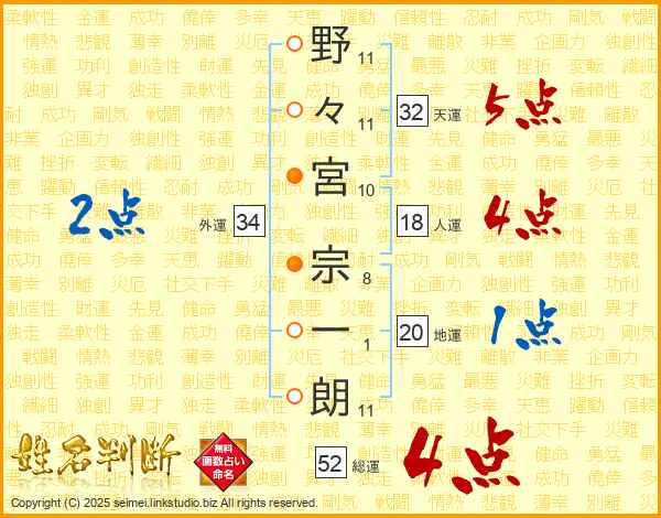 企画力 独創性 強運 功利 創造性 財運 先見 健命 勇猛