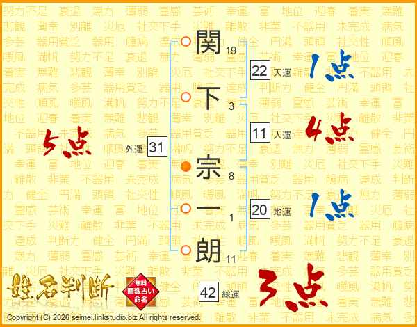 関下宗一朗さんの総運は42画の3点!