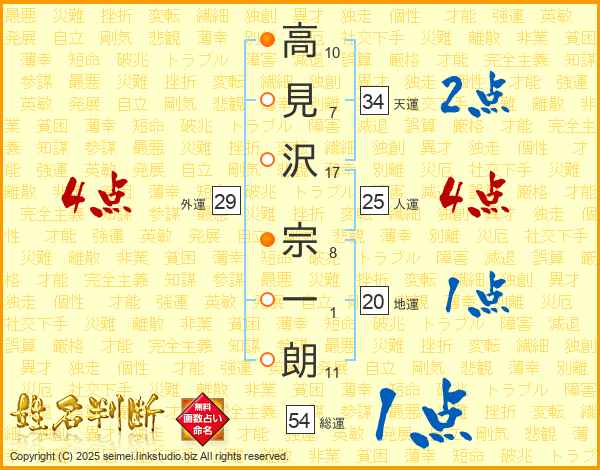 高(10画)見(7画)沢(17画) 宗(8画)一(1画)朗(11画)
