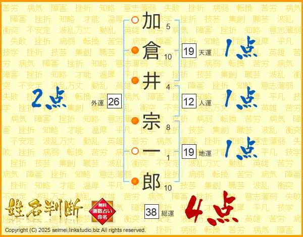 加倉井宗一郎さんの総運は38画の4点!