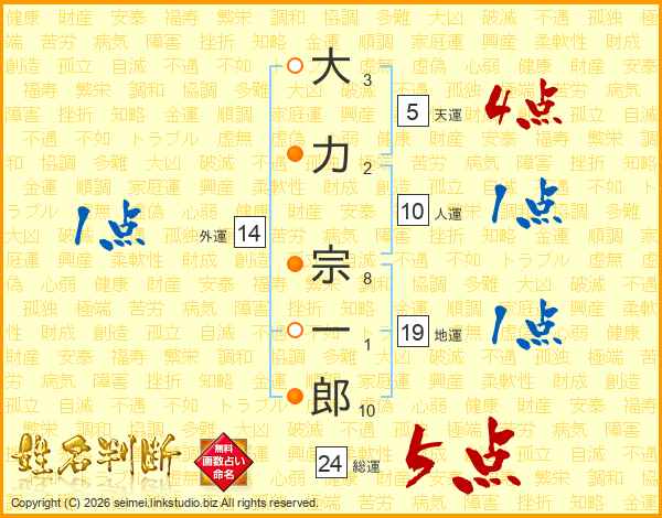 大力宗一郎さんの総運は24画の5点!