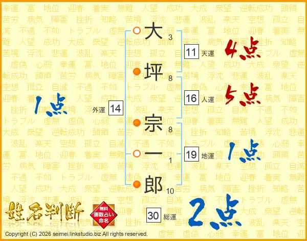 大坪宗一郎さんの総運は30画の2点!