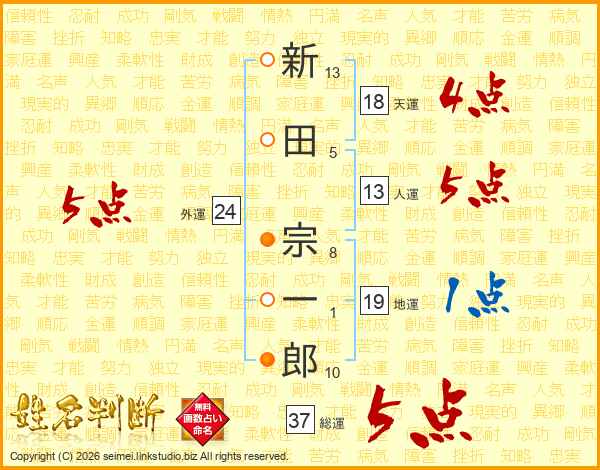 新田宗一郎さんの総運は37画の5点!