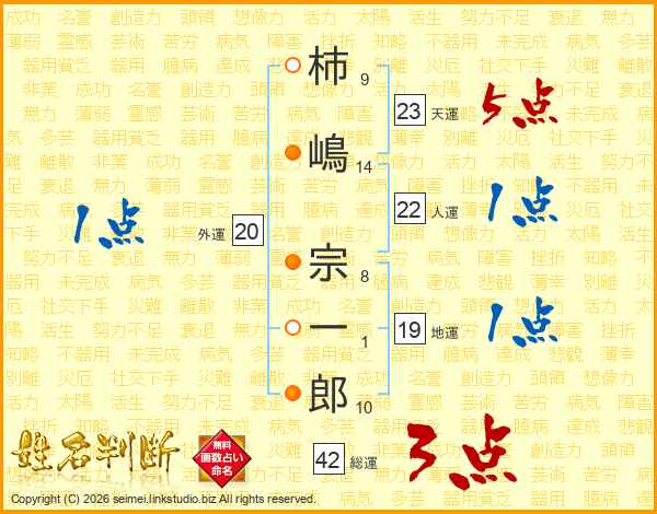 柿嶋宗一郎さんの人運は22画の1点!