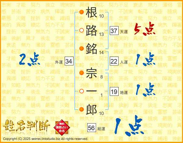 根路銘宗一郎さんの総運は56画の1点!