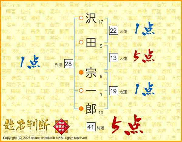 沢田宗一郎さんの総運は41画の5点!