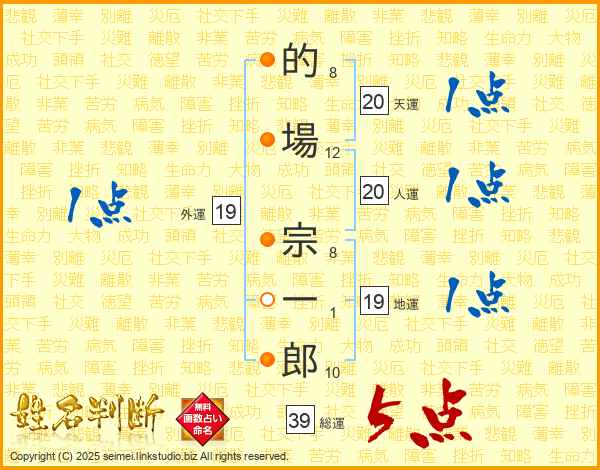 的(8画)場(12画) 宗(8画)一(1画)郎(10画)