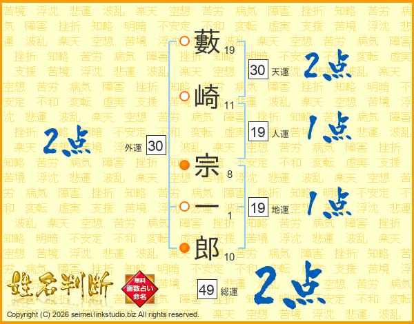 藪崎宗一郎さんの総運は49画の2点!