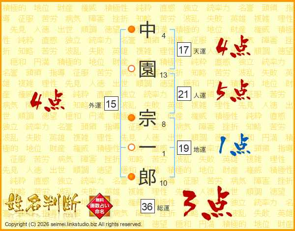 中園宗一郎さんの人運は21画の5点!