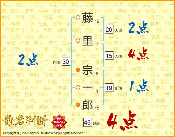 藤里宗一郎さんの総運は45画の4点!