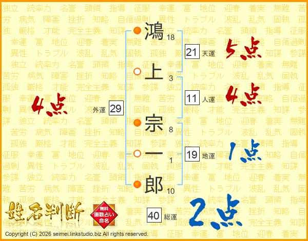 鴻上宗一郎さんの総運は40画の2点!