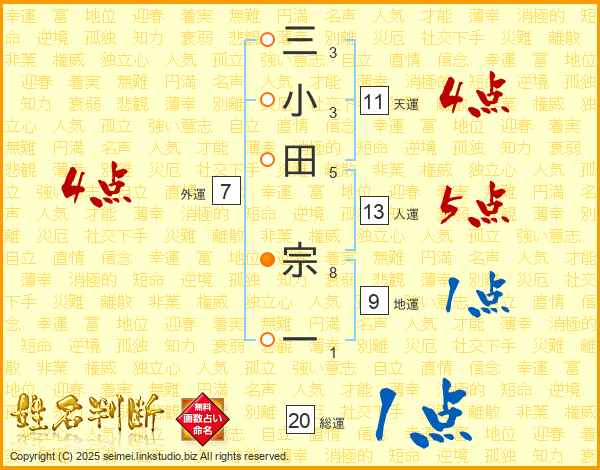 三小田宗一さんの総運は20画の1点!