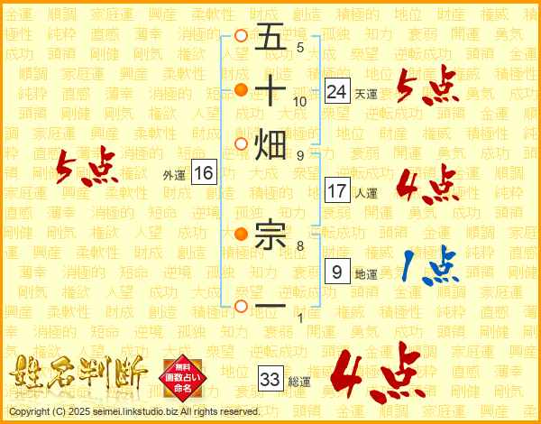 五十畑宗一さんの総運は33画の4点!