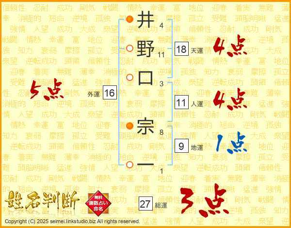 井野口宗一さんの人運は11画の4点!