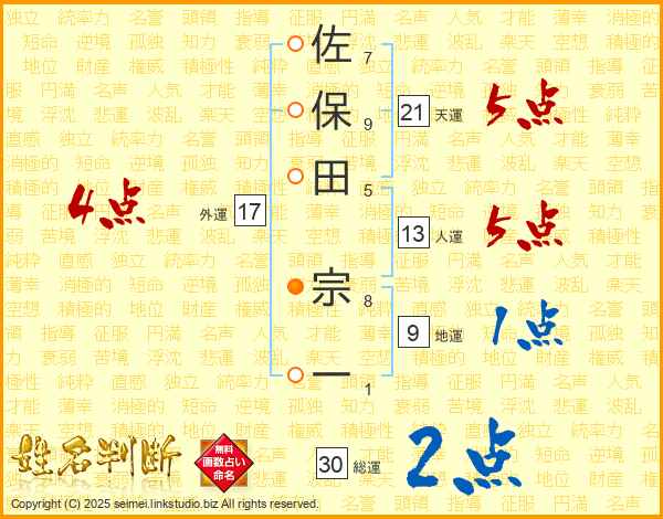 佐保田宗一さんの天運は21画の5点!