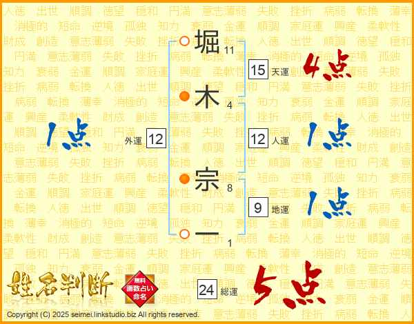 堀木宗一さんの総運は24画の5点!