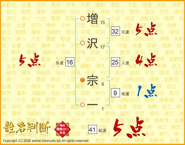 増沢宗一さんの総運は41画の5点!