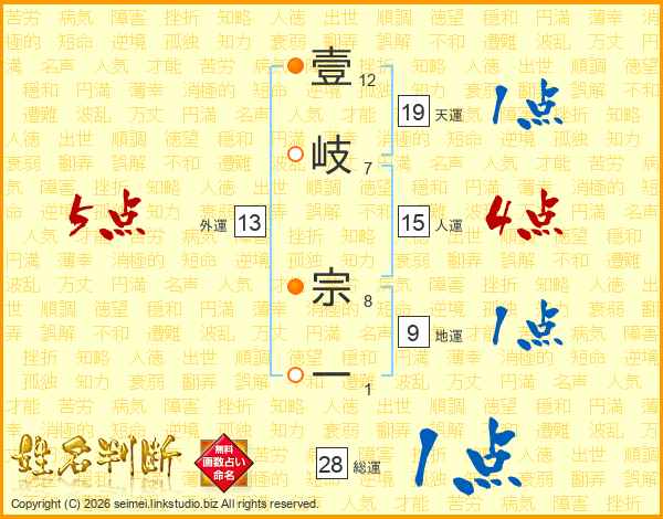 壹岐宗一さんの総運は28画の1点!