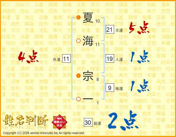 夏海宗一さんの総運は30画の2点!