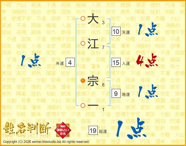 大江宗一さんの総運は19画の1点!