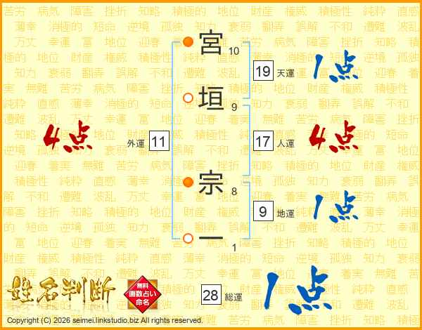 宮垣宗一さんの人運は17画の4点!