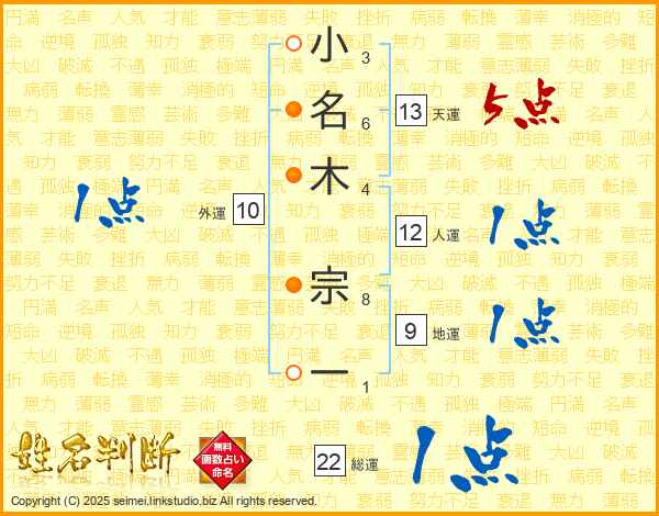 小名木宗一さんの総運は22画の1点!