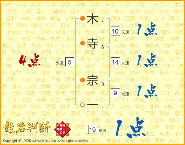 木寺宗一さんの総運は19画の1点!