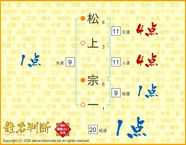 松上宗一さんの人運は11画の4点!