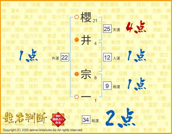 櫻井宗一さんの天運は25画の4点!
