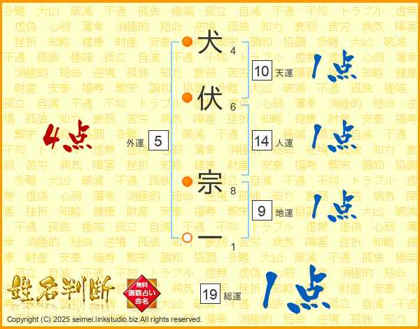 犬伏宗一さんの総運は19画の1点!