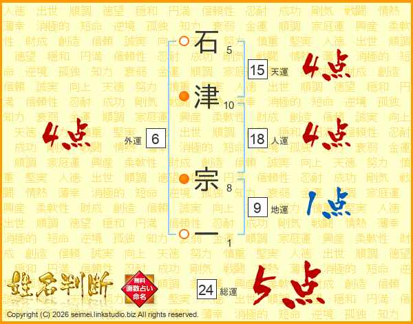 石津宗一さんの総運は24画の5点!