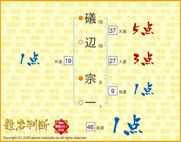 礒辺宗一さんの総運は46画の1点!