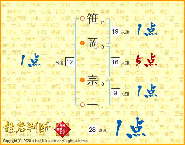 笹岡宗一さんの総運は28画の1点!