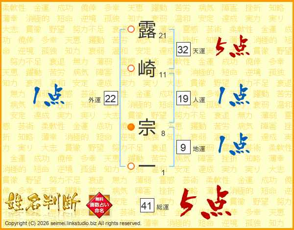 露崎宗一さんの総運は41画の5点!