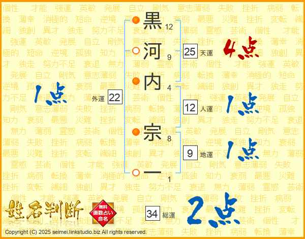 黒河内宗一さんの天運は25画の4点!