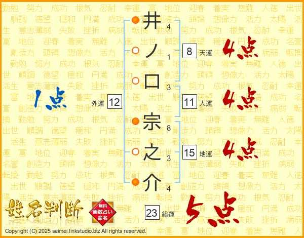 井(4画)ノ(1画)口(3画) 宗(8画)之(3画)介(4画)