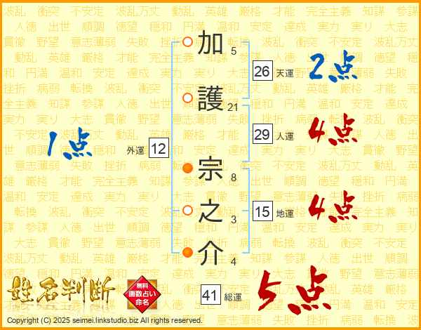 加護宗之介さんの総運は41画の5点!