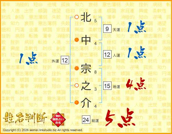 北中宗之介さんの総運は24画の5点!