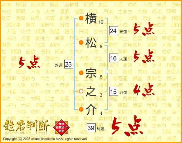 横(16画)松(8画) 宗(8画)之(3画)介(4画)