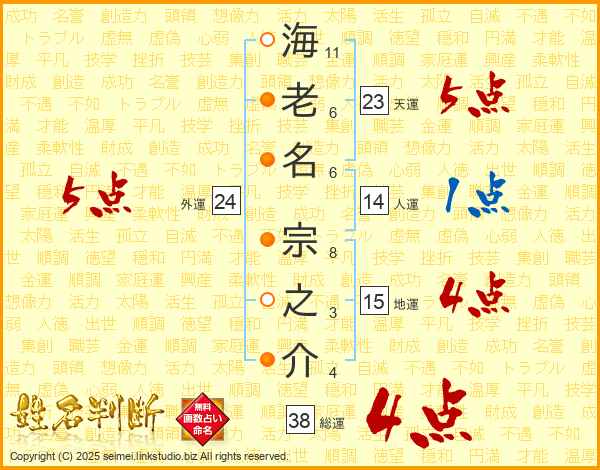 海(11画)老(6画)名(6画) 宗(8画)之(3画)介(4画)