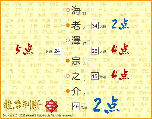 海老澤宗之介さんの人運は25画の4点!