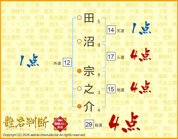 田沼宗之介さんの人運は17画の4点!