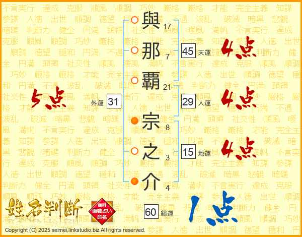 與(17画)那(7画)覇(21画) 宗(8画)之(3画)介(4画)