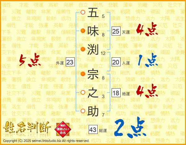 五味渕宗之助さんの天運は25画の4点!
